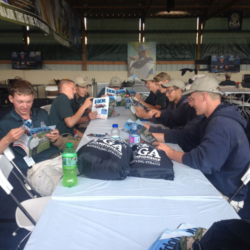 This group of volunteers take the time to enjoy a Golfdom magazine during one of their well deserved breaks.