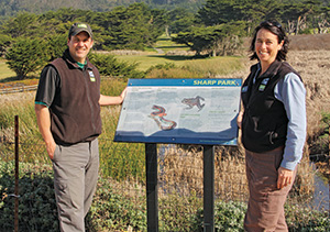 “For our department, this property has been very innovative,” says San Francisco’s Recreation and Parks Open Space Manager, Lisa Wayne, pictured with Kappelman. “Things that have worked here have translated to other properties. It’s having a larger impact on our overall chemical use on all our golf properties, lawns and sports fields.” Photo: Sharp Park Golf Course