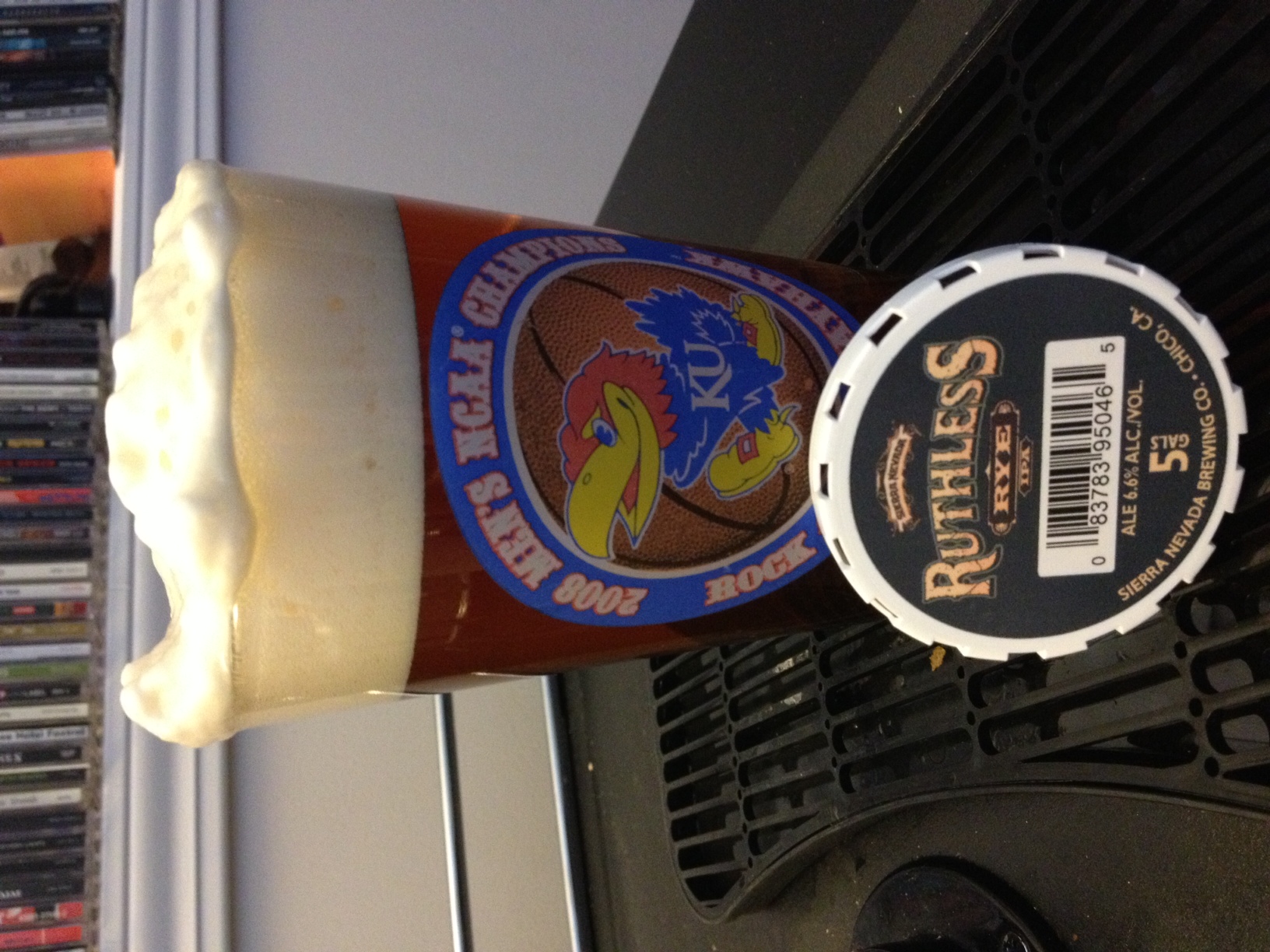 The thing I like about it best is, it’s a rugged beer… you know you’re drinking a strong beer with a bold taste when you’re having a Ruthless Rye. It’s not a beer I’d want to drink in volume, like at a tailgate party, or any given Tuesday night at the Jones casa. It is a beer I kinda want to have a cigar with. Haven’t done that yet, the weather has been too cold.