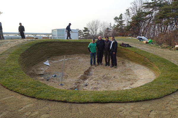 The Club at Nine Bridges, Jeju Island, South Korea, Architect David Dale and the PGA Tour’s Steve Wenzloff are looking to transform a reconstruction ritual from every other year to every other decade by having Durabunker’s synthetic turf walls installed on the course.