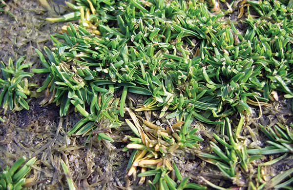 There is a direct relationship between heat, drought stress and anthracnose. It’s recommended to avoid drought stress and syringe and/or hand water on an as-needed basis. Cultural practices also help prevent the disease. Increase mowing height slightly and use solid rollers in the summer. Light, frequent sand topdressing can cushion the stem base. You also can apply small amounts of nitrogen (0.1 lb. to 0.15 lb./1,000 sq. ft.) every 14 days. Using a plant growth regulator helps reduce disease activity by improving plant growth. Increasing mowing height and adding nitrogen also can help encourage plant recovery if anthracnose already is present. Preventive applications of appropriate systemic fungicides can be highly effective for preventing anthracnose.