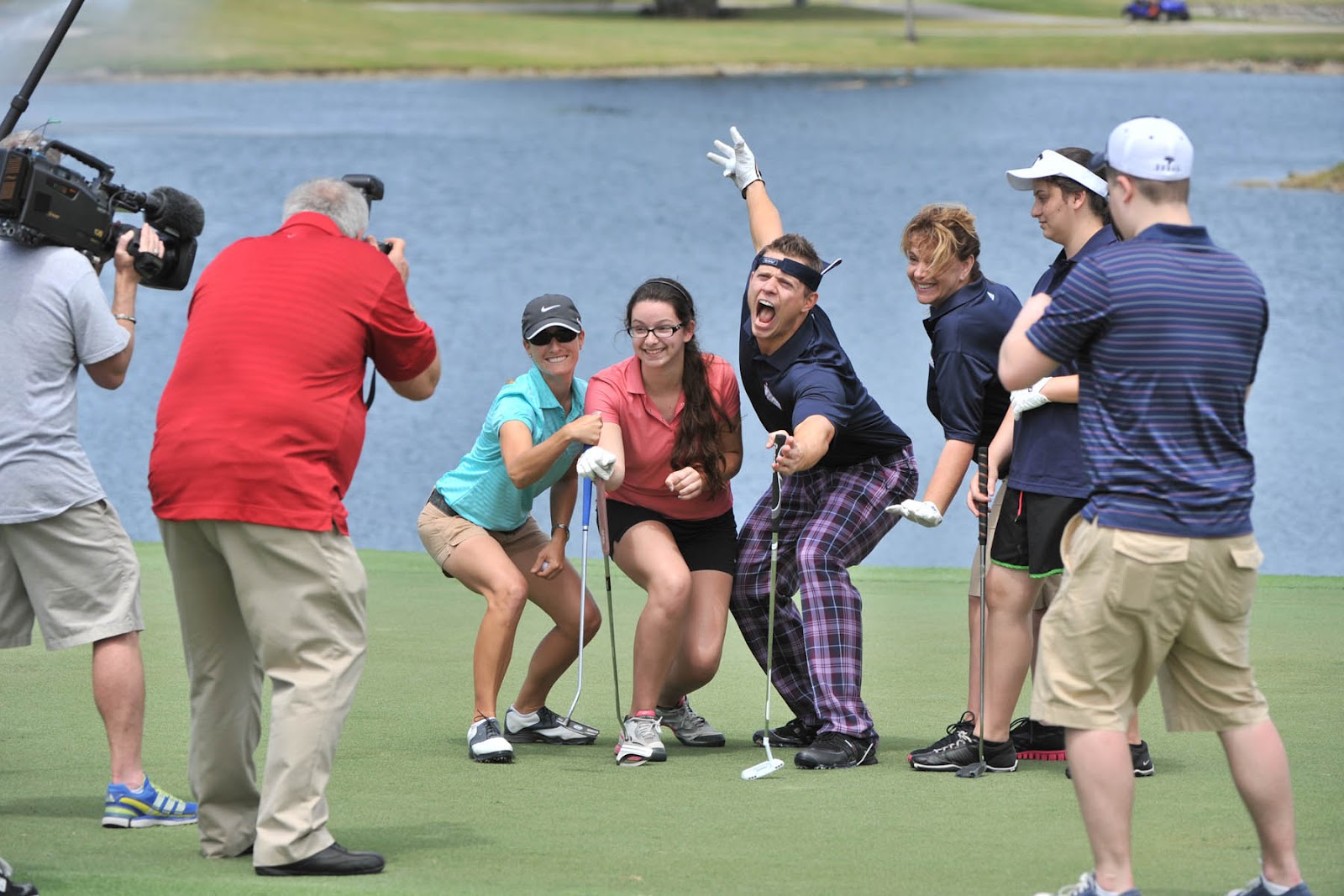 If you missed Sunday’s Wrestlemania XXVIII, well, I heard it was a good one, and I read somewhere that the Rock was victorious over John Cena. The undercard to that epic battle, though, was an epic scramble of WWE superstars at Doral Resort and Spa. The folks at WWE were kind enough to send me these pics of the Big Show putting (that’s probably a belly putter he’s using, but his size makes it look like a belly putter) and the always annoying Miz celebrating what was surely a missed two-foot putt.