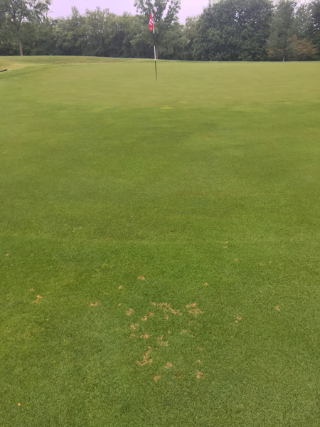 Dollar spot made an appearance at Ruth Lake when a fungicide application missed a spot on the 11th hole.