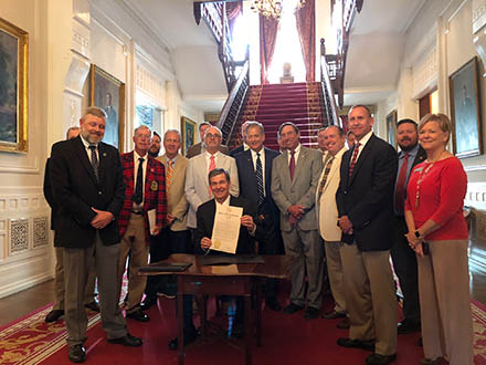 Governor Roy Cooper (center) presents the North Carolina Golf Day proclamation with golf industry representatives. Sen. Rick Gunn stands center in gray suit.