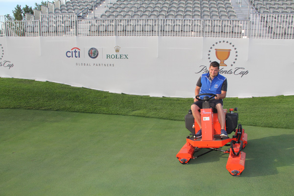 With temperatures in the high-70s to 90 degrees in the days leading up to the Presidents Cup, maintenance team members syringing the greens was a common sight on the course.
