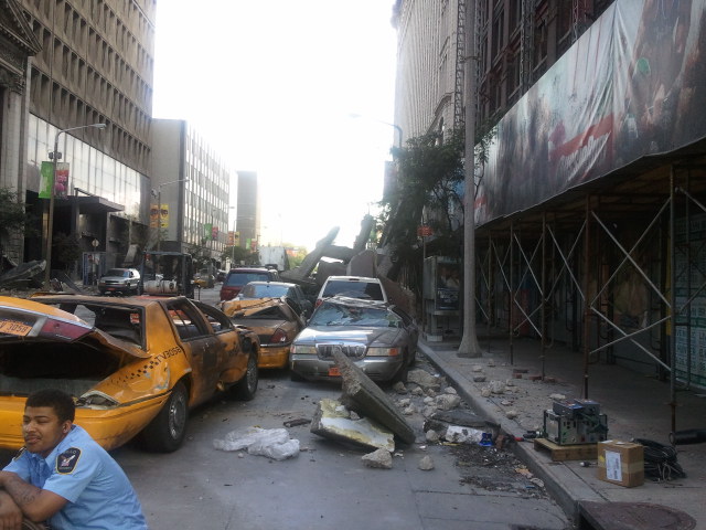 So I was thrilled to learn that the comic book-themed movie “The Avengers” was being filmed in Golfdom’s home city of Cleveland. The above photos were taken just a few blocks away from our office. The one set is a city block, and it has been made up to look like there’s been a serious battle on the streets of New York. The other set has been made to look like a German beer garden.