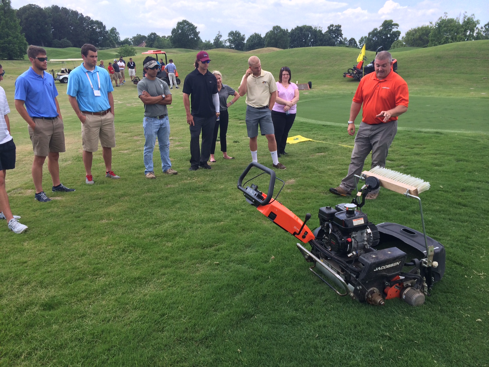 I was invited to speak at Jacobsen’s annual Future Turf Managers event. Every year Jacobsen brings in 20+ of the top turf students from around the country (and this year, one Aussie) to give them an opportunity to learn, network, and of course, ride and drive some orange equipment. A tour of both Jacobsen facilities in Charlotte is also included.