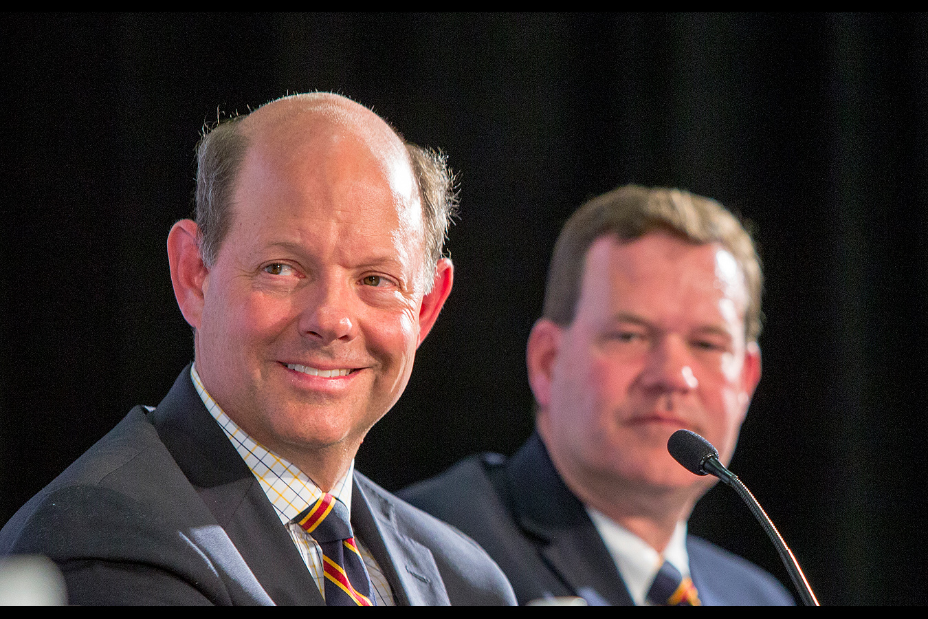 USGA Executive Director Mike Davis ready to speak at the U.S. Open media day on April 27. (Photo: USGA/Steven Gibbons)