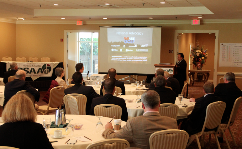 Check this out: Rafael Barajas, CGCS, talked about GCSAA politics, including the demise of the “SM” membership category; there was a big WOTUS discussion that included a D.C.-area lawyer (an interview with her to come soon via the magazine and GolfdomTV); then the big brains at Virginia Tech (Erik Ervin, Ph.D.; Shawn Askew, Ph.D.; and David McCall, soon-to-be-Ph.D.) gave a great presentation; and then I limped up there and spoke for 75 minutes about such things as labor issues, propane mowers, soil moisture meters, third-party online tee time brokers, and the average age of today’s superintendent.
